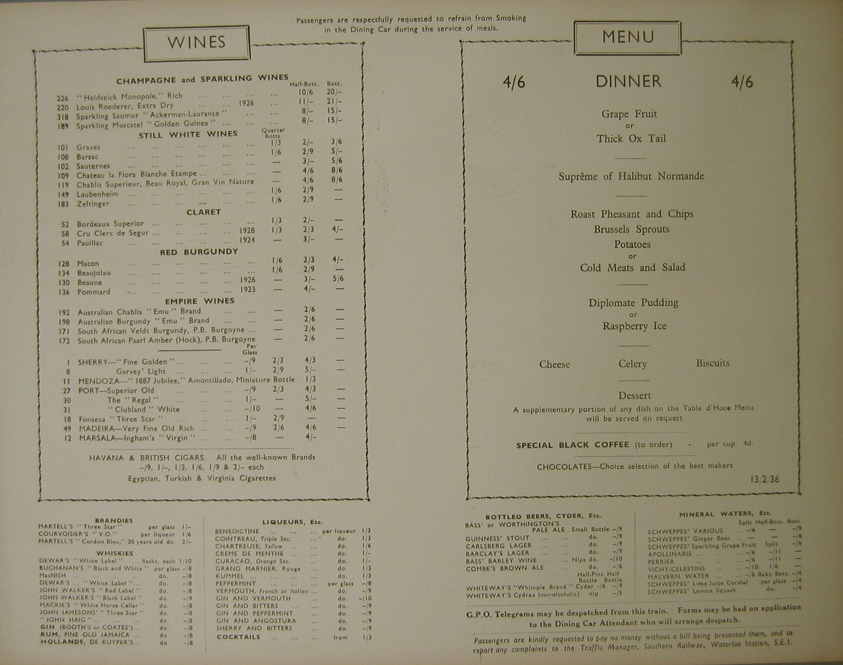All the menus are dated and different menus were produced every day. Some also include the name of the train they were to be used on, for example, The Atlantic Coast Express. See the lunch menu below. All the images are by Leonard Richmond and from 1936.