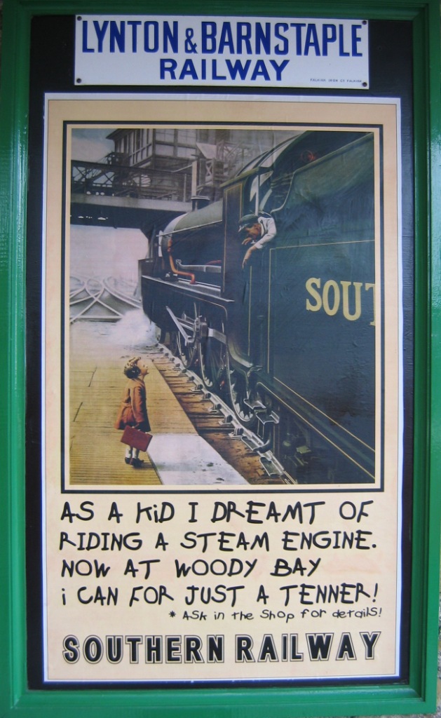 The following posters are on display at Woody Bay station on the Lynton & Barnstaple Railway. At first sight they may appear as normal copies of Southern Railway posters. But look more carefully and you will see subtle changes. Click on an image to see a bigger version. Thanks to the Lynton & Barnstaple Railway for agreeing to these images being included.
