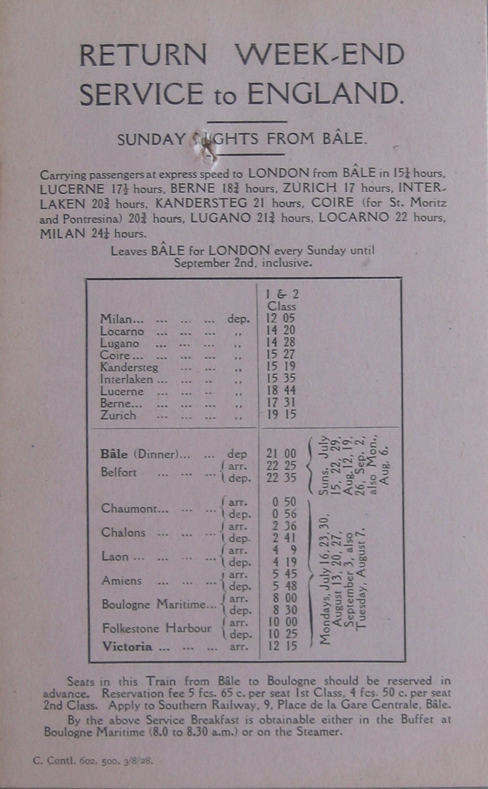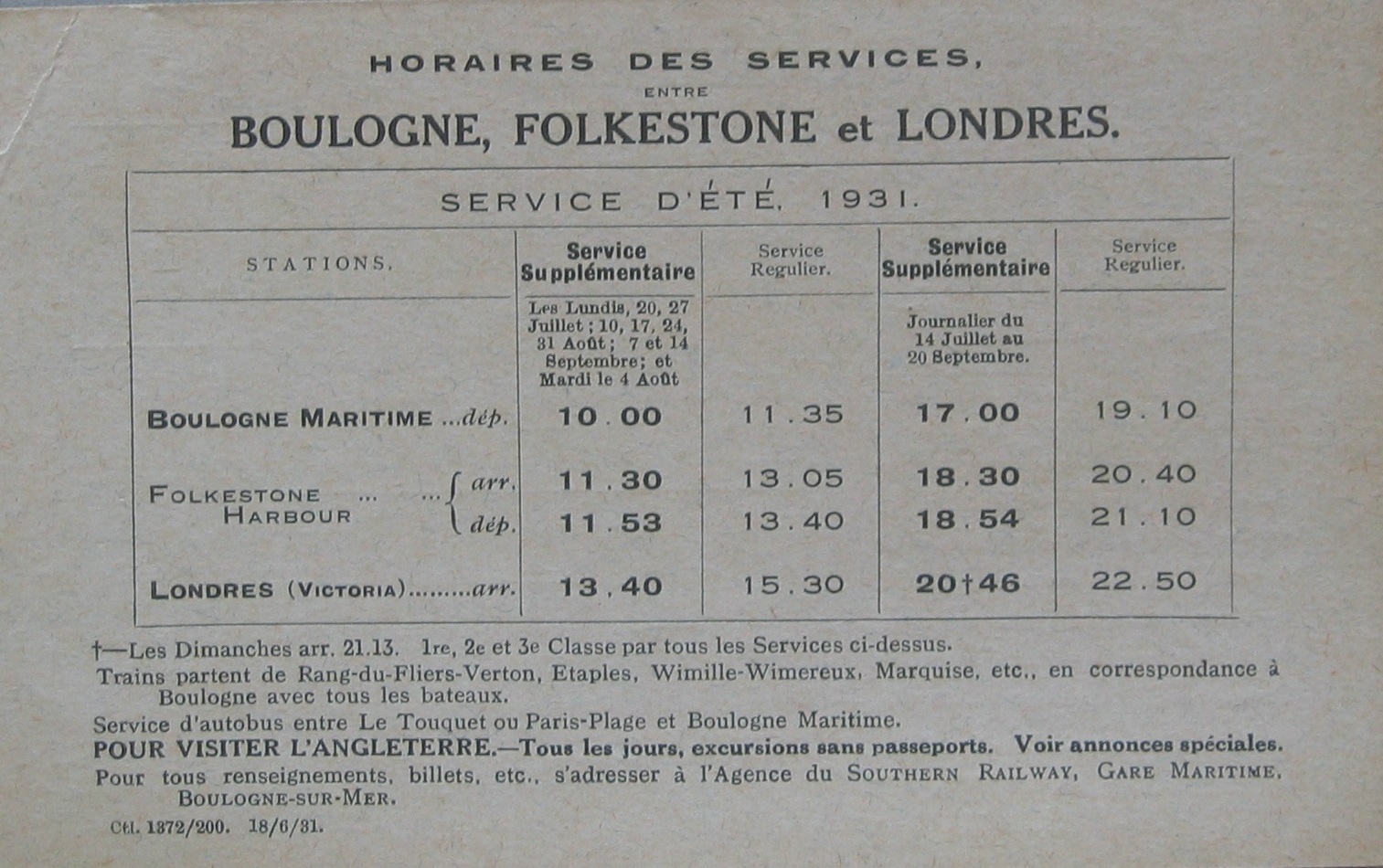 Runs in connection with “Golden Arrow” service between Victoria and Paris daily.